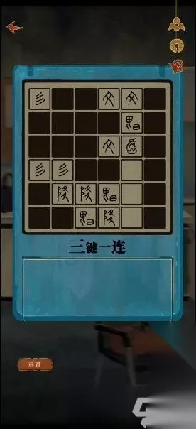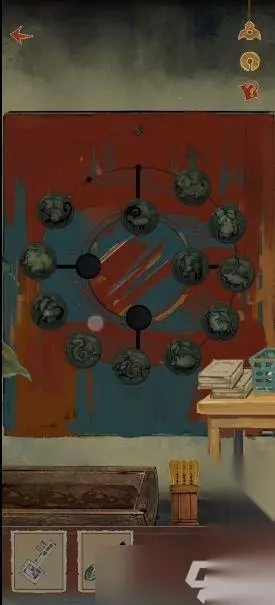 16、完成小游戏(随机),得到生肖鸡石刻。(翻找相同图案,每种图案都有3个相同。) 17、拾取铁锹和生肖龙石刻,用铁锹挖花盆,拾取蚯蚓。 18、将蚯蚓喂给八哥,拾取掉落的炭笔。 19、完成转盘拼图,得到钥匙。