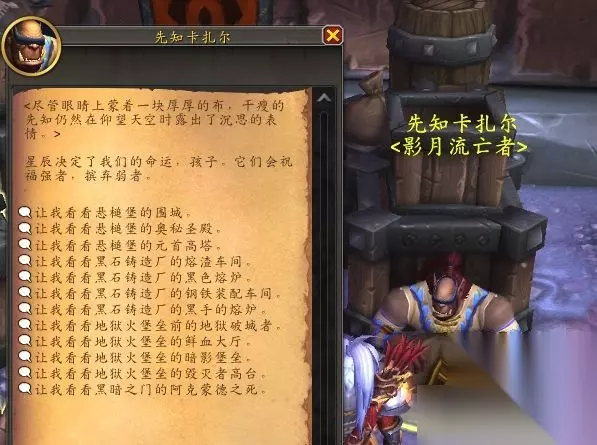 三、6.0版本《德拉诺之王》 在藏品玩具中,点击“要塞炉石”回到要塞,联盟方位于(33、36),部落方位于(40、47),找到NPC先知卡扎尔,排队随机本。
