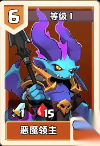属性介绍 恶魔领主,种族归属--‘亡灵’,待机值6,1级基础属性1|15,满级基础属性2|25。恶魔领主的基础攻击数值并不高,主要是依靠技能打伤害和压制效果,所以我们要凭借恶魔领主的高额基础血量,保证恶魔领主的存活,把恶魔领主的技能效果最大化发挥。 技能介绍 (1)技能1--尸王