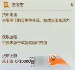 t15_2-t15_1:7.0 标签: 充值 剑网3指尖江湖手游中通宝券怎么得?剑网3指尖江湖手游的道具很多,用途也很多,其中通宝券很有用,那么通宝券怎么获取的,主要来源于成就奖励和充值,下面一起和小编看看吧! 剑网3指尖江湖通宝券获取方式: 主要来源于成就奖励和充值。 通宝券用途 主要用于购买外观、游戏币和活力。