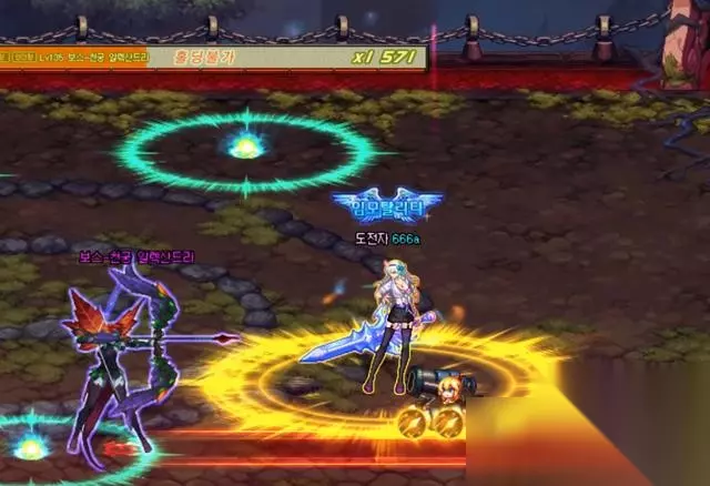 技能三:箭雨,朝空中发射出3种属性箭,弓箭呈箭雨朝地面下落攻击,每一发弓箭都有独立的光圈提示,容易躲避。