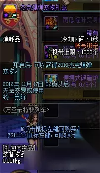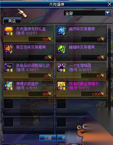 活动奖励 万圣节糖果:可以在赛丽亚房间的杰克爆弹NPC商店处兑换道具。