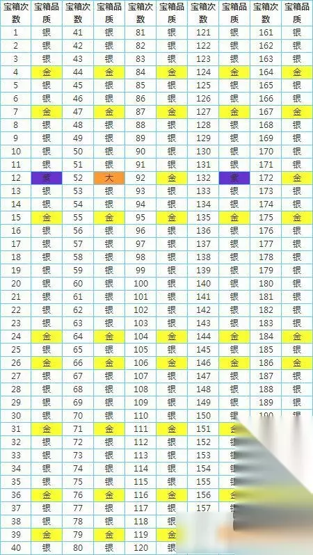 皇室战争中,宝箱的掉落是有规律可循的,玩家们想要知道自己的好宝箱什么时候来临,就需要了解宝箱的掉落次序,宝箱的掉落每200次一轮回,那么怎么才能掉紫色箱子呢?这里小编给玩家们带来宝箱的掉落次序表,一起来看看吧! 皇室战争宝箱掉落次序: