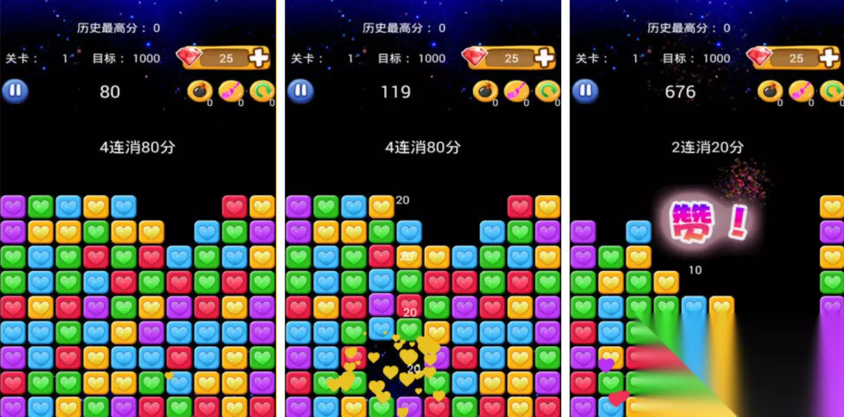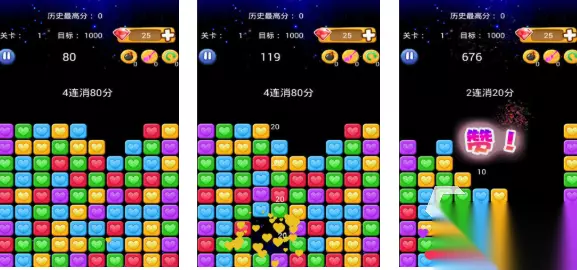 这款最为经典的单机消除星星小游戏内容关卡超级丰富,极为多样的星星消除玩法以及超多小道具的加持让大家久玩不腻,玩法虽然经典但为大家打造了超级清爽的界面,全新消除机制与很容易的操作也是这款神作的亮点,消除特效和音画方面的表现一如既往的经典刺激,超多的星星消除模式也为这款神作润色不少哟。 高速下载 普通下载 4、《消灭星星甜心版》
