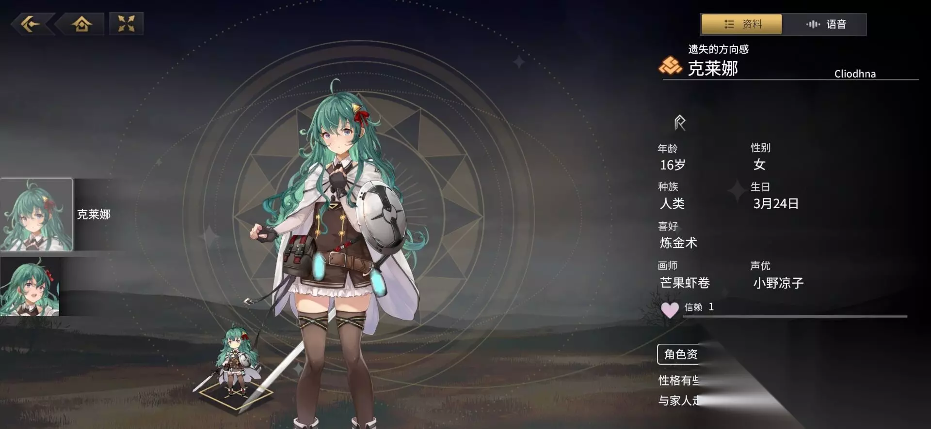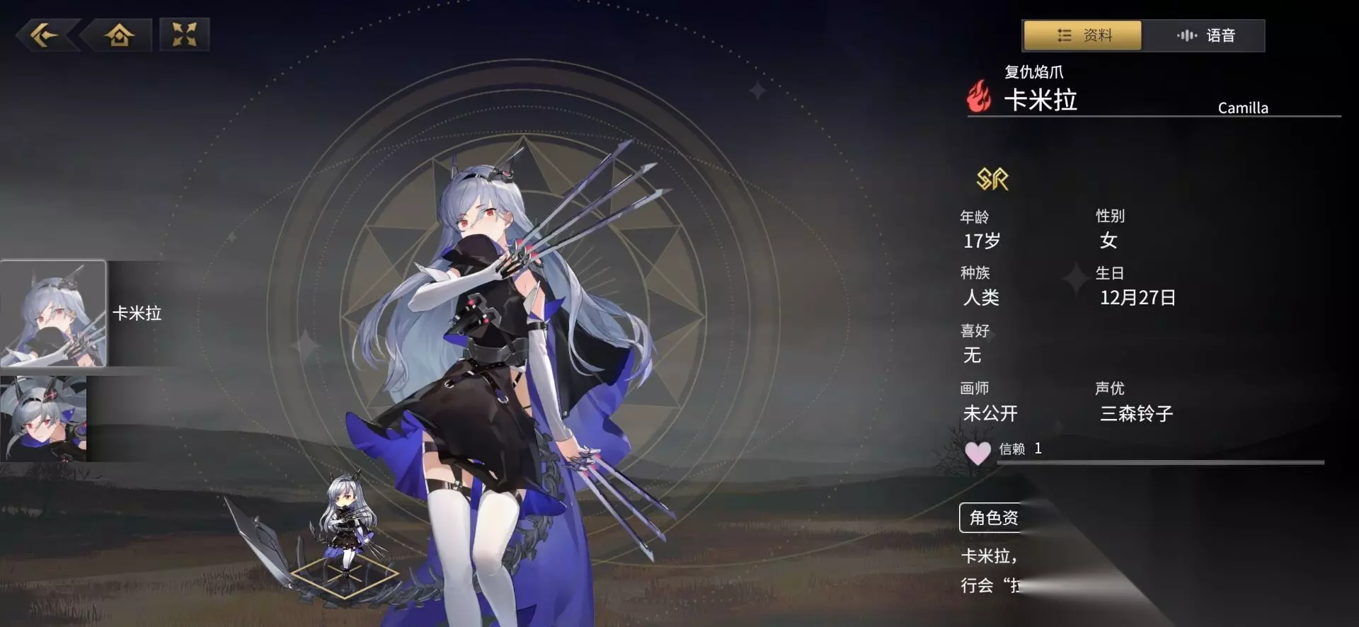 莲华:这是一个技能比较复杂的风属性角色,核心技能的嘲讽以及无敌效果,十分的简单粗暴,一技能会提升自己攻击力,仇恨值以及回避效果,一方面可以为队友吸引火力,另一方面结合二技能,提升自身防御力还可以增加无敌一个回合的效果,他最强势的地方在于只要成功躲避敌方普攻或者技能,就可以立马获得相应数量的调律值,人品好的话既可以为队伍吸收伤害,释放技能的频率就越高。 Sr梯队