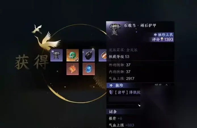 3、顽石护甲(佩戴等级53) 坐标桃溪村772.913。进入山洞,击败石头人开箱即可获得。