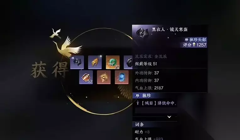 2、镜天寒盔(佩戴等级51) 雁门关坐标395.852。等到天黑拔剑,然后击败黑衣人即可获得。