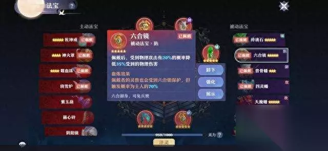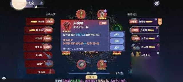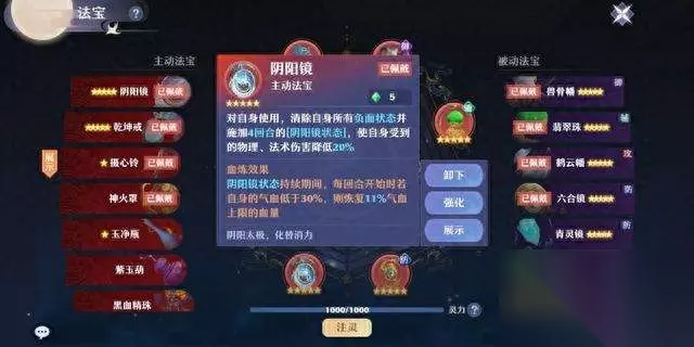先来说说被动法宝的选择。被动法宝分为御、防、攻、辅4类,每类法宝能装备一件。御法宝里,物理宠必带兽骨幡,血炼忽视5%物防效果。带法宠必带灵妖幡洗出法术忽视5%。两个法宝只能选择其一,建议PVE用法宠,PVP用物理宠。