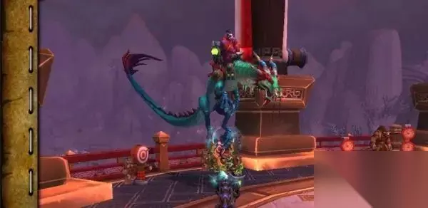 3. 找到飞行训练师: 以部落为例,通过传送门到达锦绣谷后,部落玩家处于双月殿,在双月殿外的金色平台上就有飞行训练师。