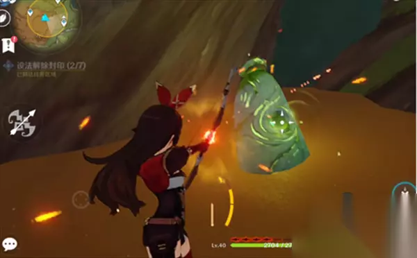 解除方式就是用安柏对着绿光石头蓄力攻击。