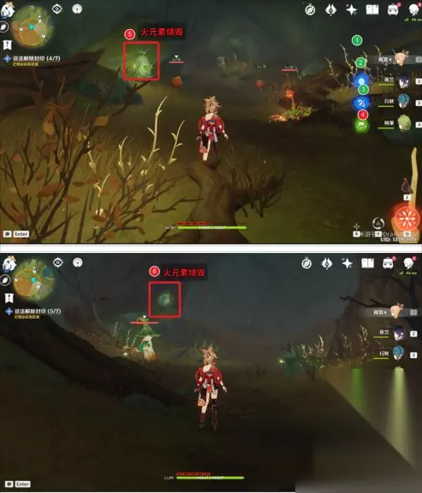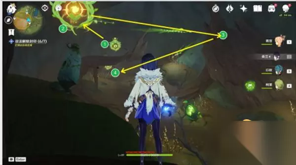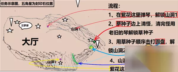 ?原神3.0版本中有不少任务需要玩家完成,失梦的苗圃任务中有一个环节需要玩家解除7处封印,那么原神设法解除七处封印在哪?下面小编带来,希望可以帮助到大家。 首先封印需要用火元素攻击解开,7个封印分为两部分,山洞外直观能看到4个封印,山洞内还有3个封印,山洞需要对着紫色的花弹琴打开。