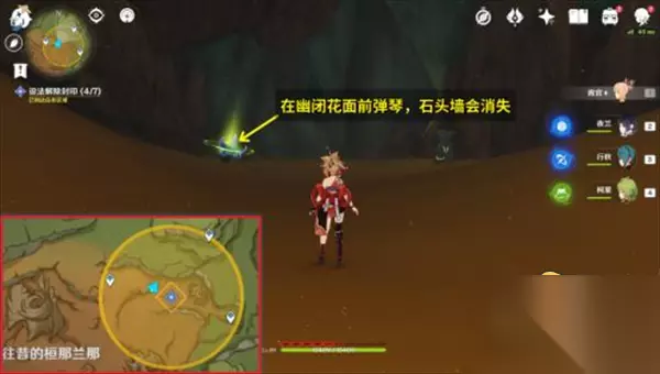 外面的四个都很好找,重点在于对着这朵紫花弹奏大梦的曲调。
