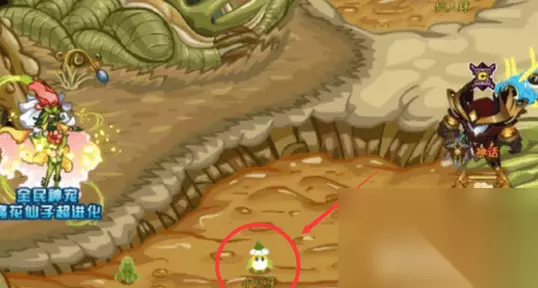 3、在克洛斯星沼泽中找到NPC小J并与他对话,将触发小豆芽的出现。 4、与小J对话后,地面上会出现三片叶子,其中一片叶子下隐藏着小豆芽。