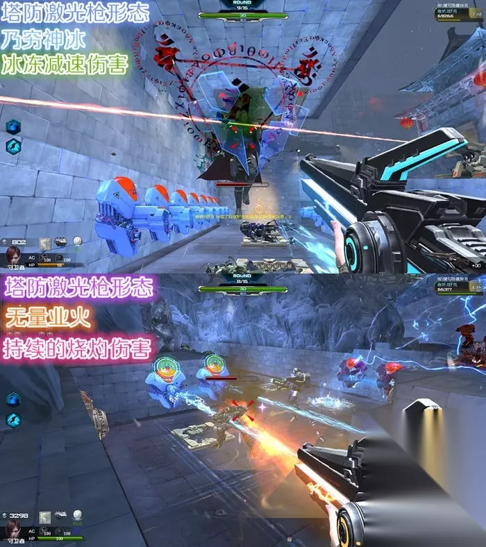 该武器最大的亮点还是在塔防状态下的激光枪形态,借助塔防无限子弹的buf,激光枪射出的量子光束弹道稳定对目标造成持续伤害,且玩家可以根据情况切换输出激光形态。