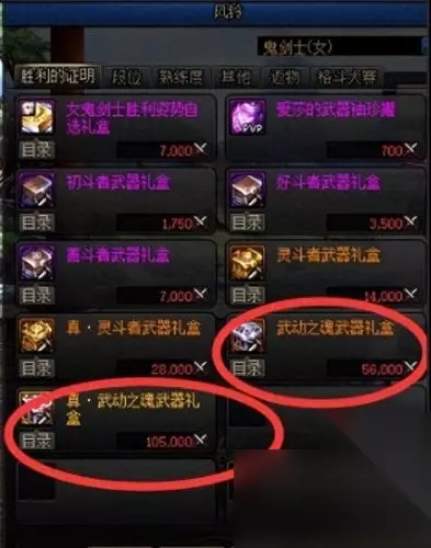 哈喽大家好,这里是亿游聚合,每天为你分享游戏相关的内容,喜欢的快来关注哟~ DNF游戏种玩家们可以在决斗场获得决斗点,找npc风铃就可以兑换武动之魂武器礼盒获得武动之魂光剑了。 DNF种玩家可以参与决斗场玩法,通过进行PK完成任务来获得一定的决斗点,决斗点可以用来在风铃那里兑换武动之魂武器礼盒和真·武动之魂武器礼盒,分别需要56000决斗点和105000决斗点。