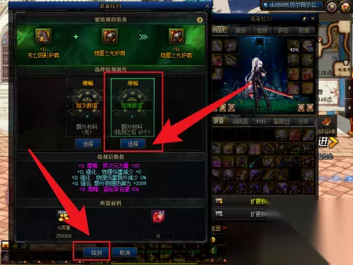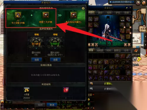 3.在操作界面中,先放入100级装备,再放入105级装备。