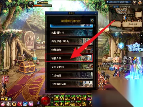 DNF100级装备继承到105方法 1.在游戏中,进入赛丽亚传送阵,传送到装备升级区域。