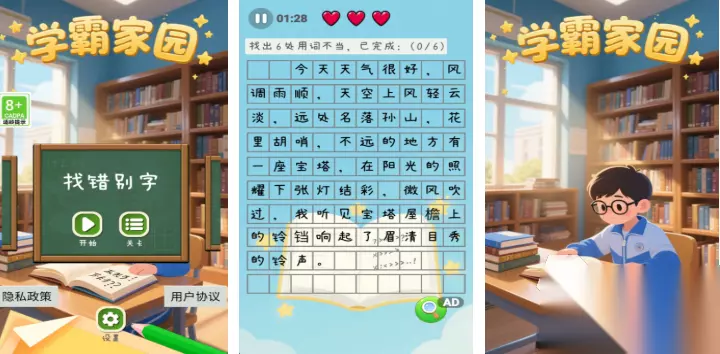 如果你爱玩那种高挑战性的学霸模拟手游,那学霸家园这款学习主题的手游值得尝试,这是款能够模拟扮演老师批改作业的经典小游戏,找错别字的纠错类玩法有着极为深刻的代入感,扮演学霸自定义批改作业的玩法设定也很新颖,各种学习方面的专业知识组合的关卡很有创意,高智商的朋友进入学霸家园中完成任务吧。 高速下载 普通下载 优先233乐园APP下载 3、《全民学霸》