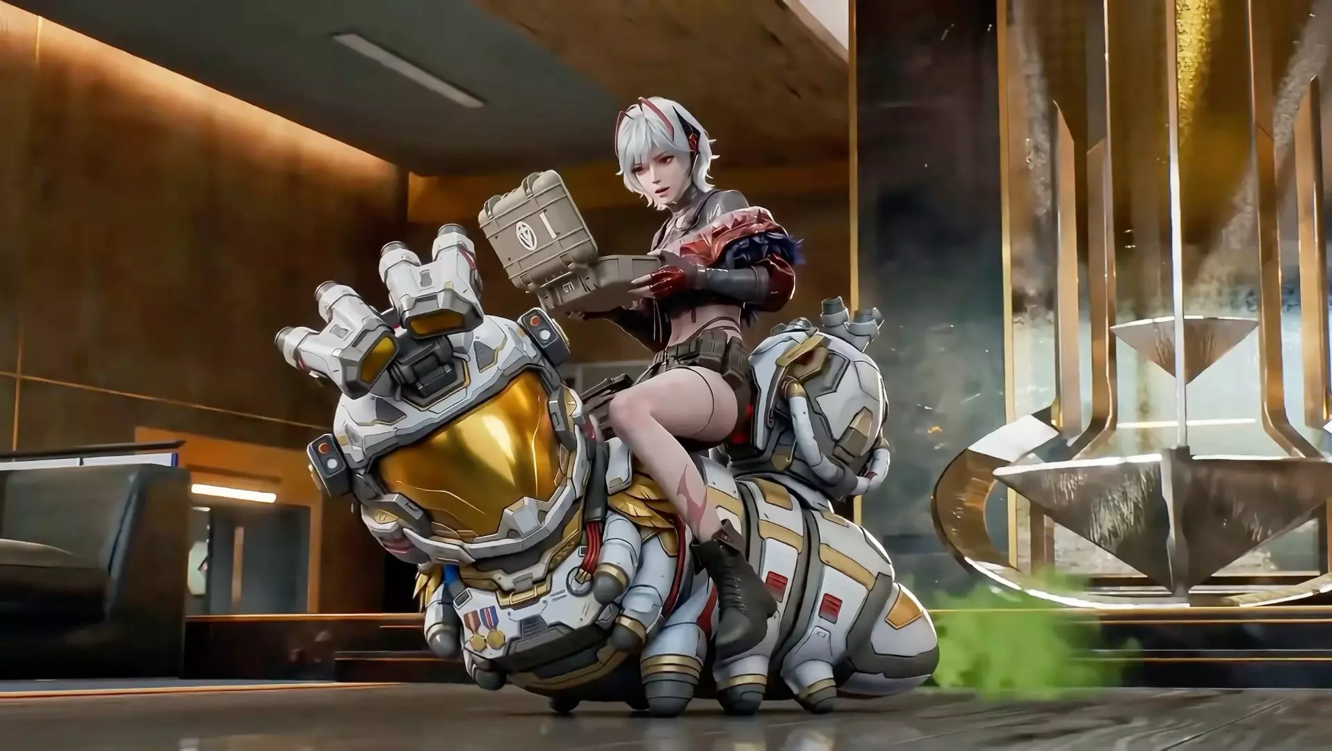 这组3D动画图呈现了角色小麦的趣味互动场景,小麦身着战术头盔装备,被调侃去卖煎饼果子,还和企鹅装小角色、银发角色有互动,展现出和以往不同的反差感。