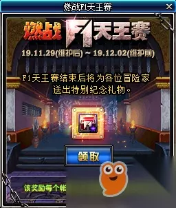 3、"参与决斗的奖励"任务的要求是完成2场决斗,任务完成后可以获得1个经验胶囊,使用后,增加10%的经验值。Lv50~94可以使用。 4、第二阶段在11月29日维护后开启,上线即可领取奖励。礼盒开启后,可以获得1个远古精灵的超级秘药、1个F1天王赛强者的气息、1个F1天王赛盛典药剂和1个2019 F1天王赛冠军荣耀。