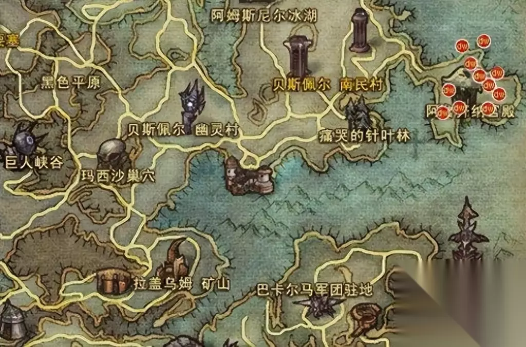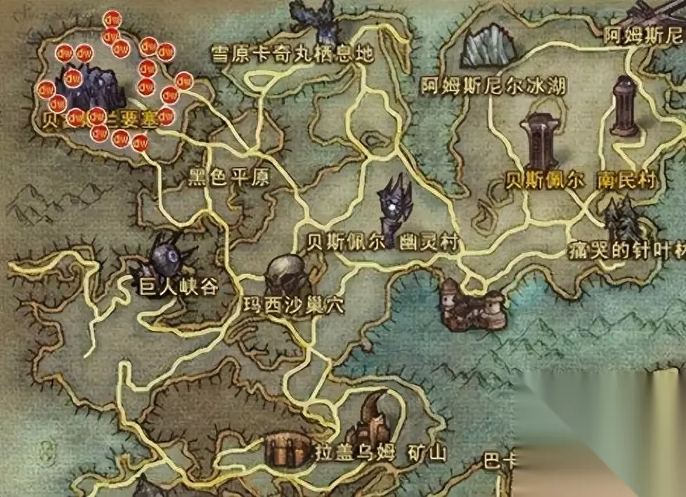 采集地点 1-75熟练度 采集地点主要分布在地图中的阿尔特盖德要塞周围。