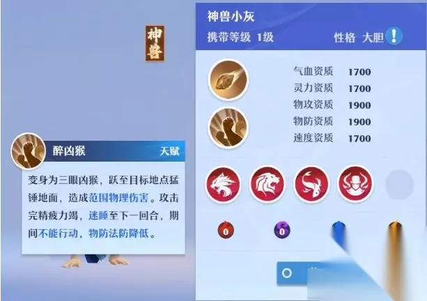 梦幻新诛仙神兽小灰加点与技能打书攻略 一,对于游戏前期来说,神兽的资质无疑是非常顶级的,到了中后期,也算得上中上水平的资质。 神兽小灰的1技能,可以用来培养成封系职业的单秒宠。其2技能,也可以适合大多说职业培养成群攻宠。 这里只讲专属与封系职业在pvp中用于单点秒杀的神兽小灰技能搭配推荐(仅代表个人观点,不喜勿杠)