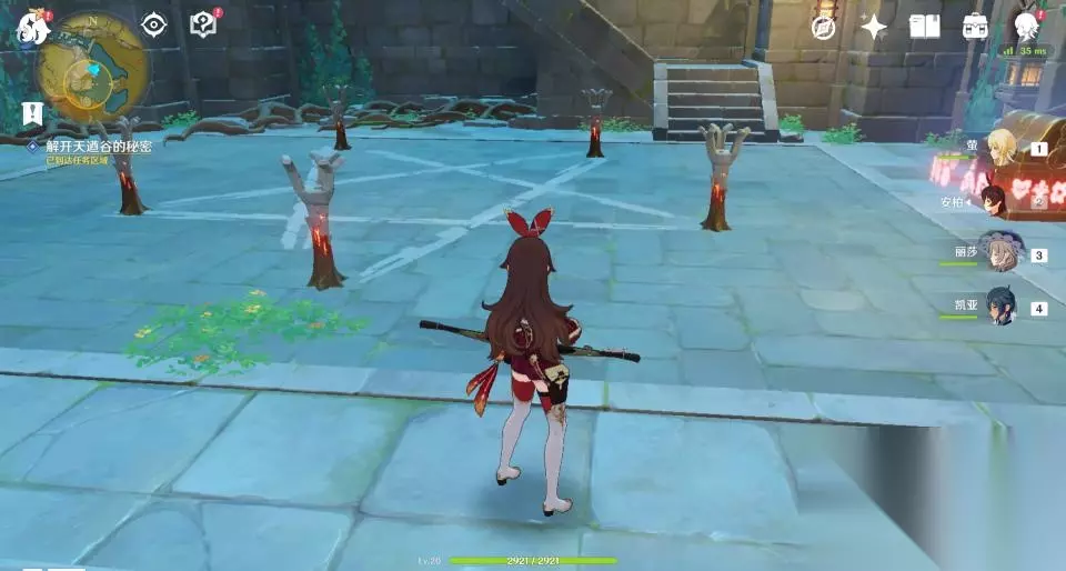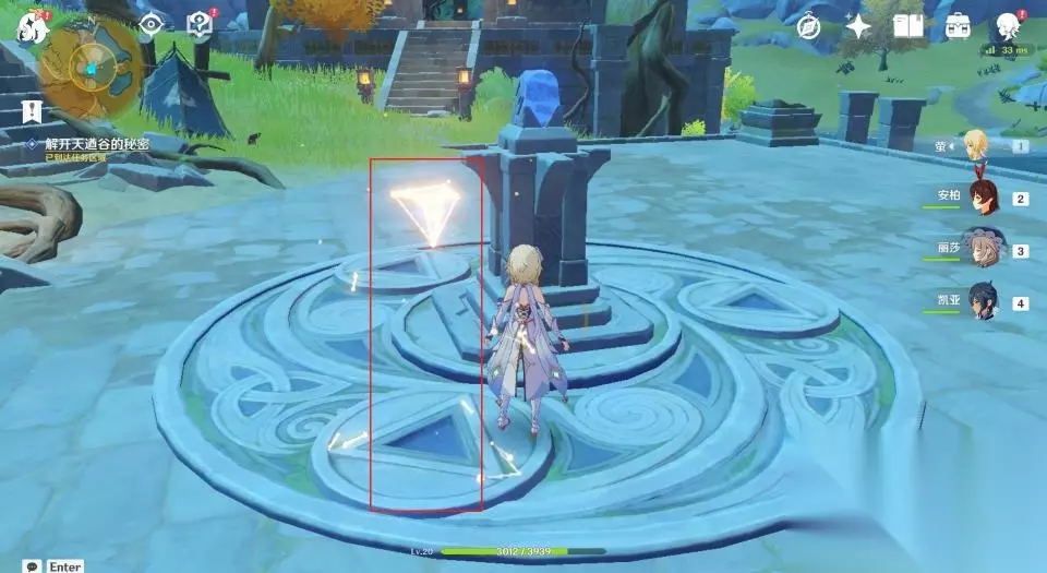 14、带着发光体回到石碑前方石柱的位置。