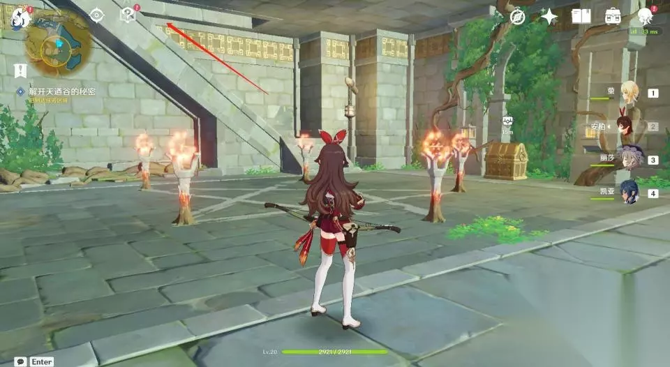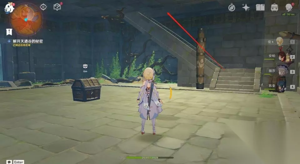 9、击败怪物后挑战达成,获取宝箱后继续沿着楼梯往上层走。