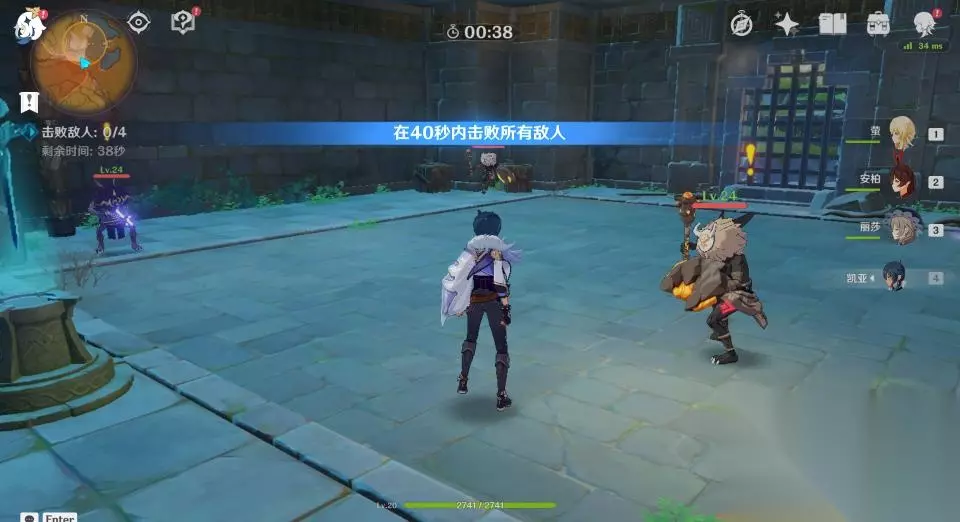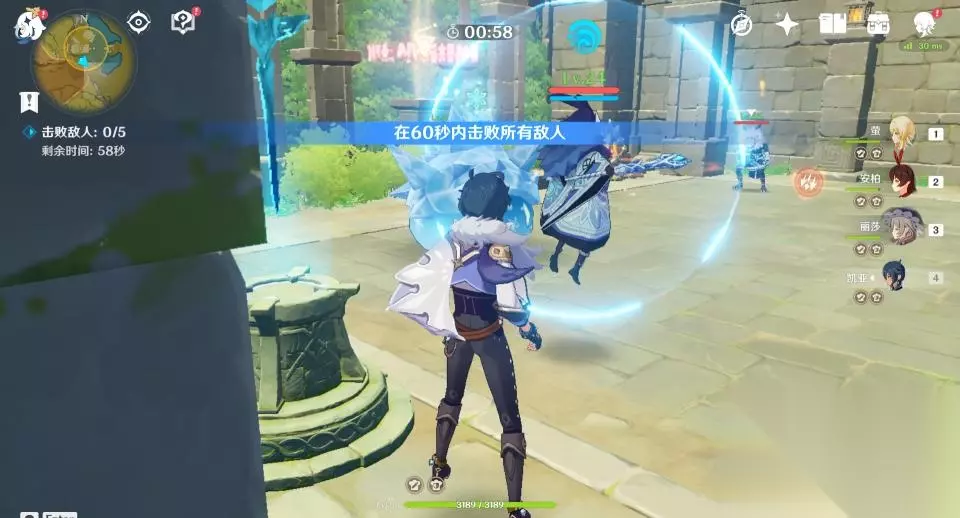 11、开启挑战后会出现水、冰两种属性的怪物,伤害偏低的玩家最好有限处理水属性的怪物,否则会因为元素反应频繁进入冰冻状态,会浪费时间,使得无法在规定时间内击败怪物。伤害足够的玩家也可以直接不管不顾的全部秒杀怪物即可。