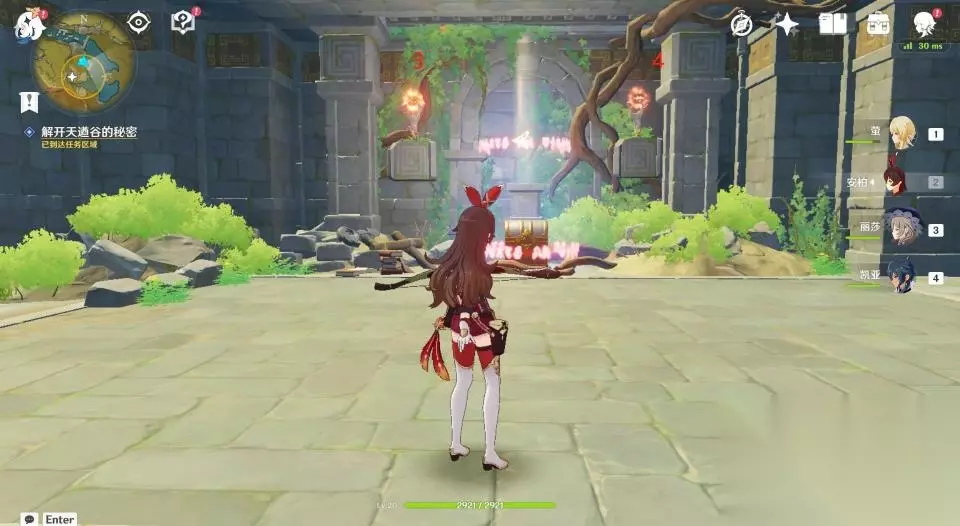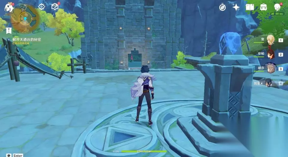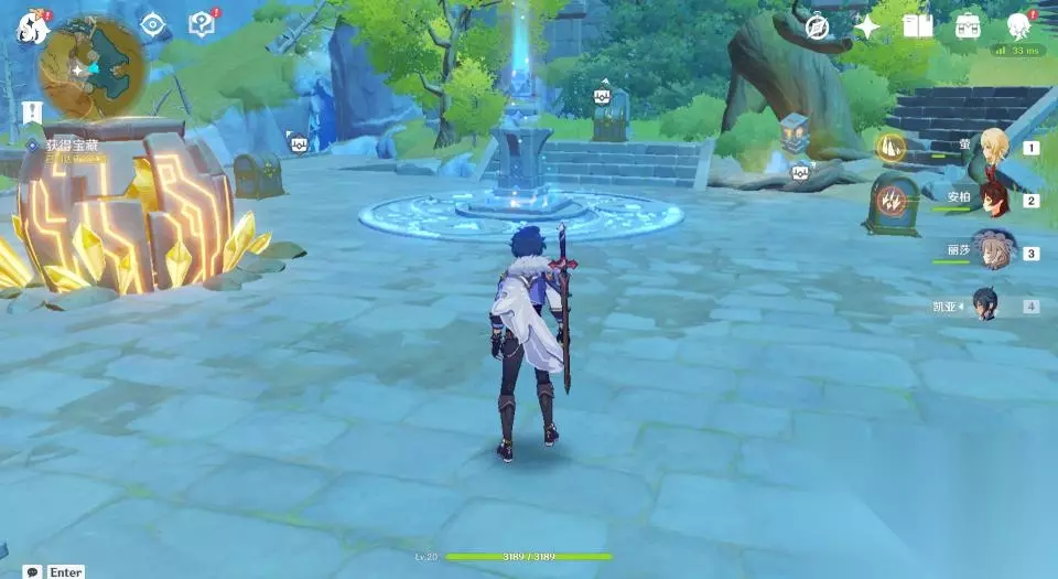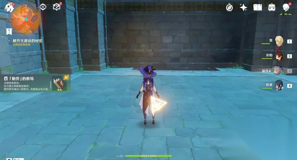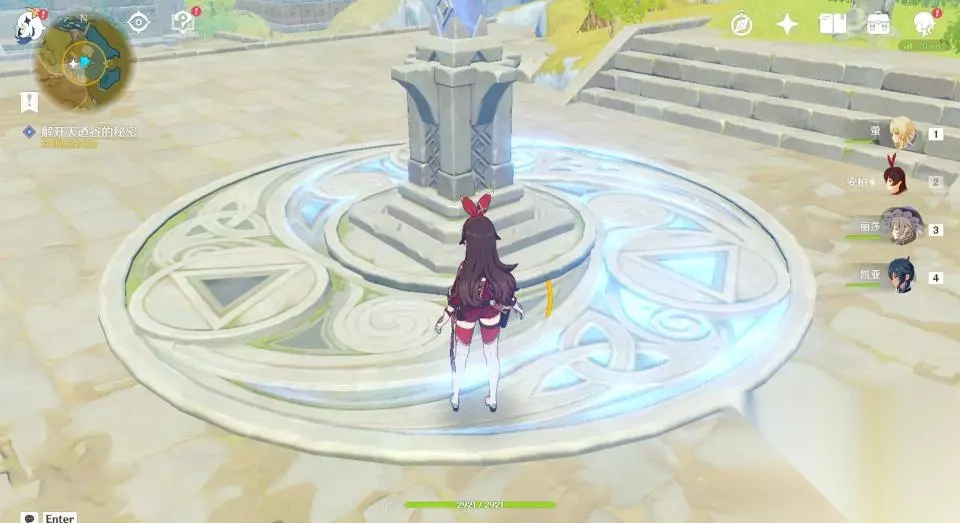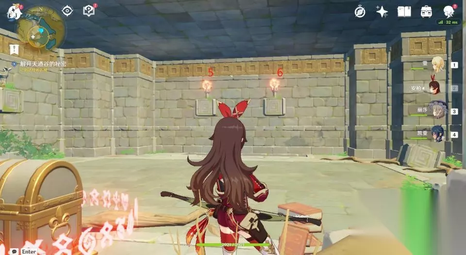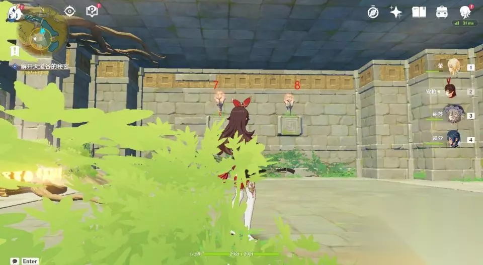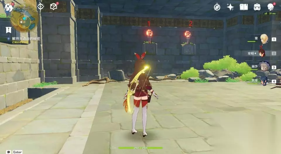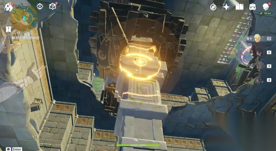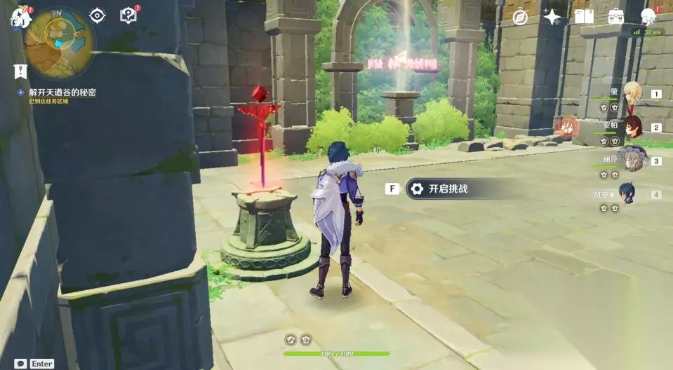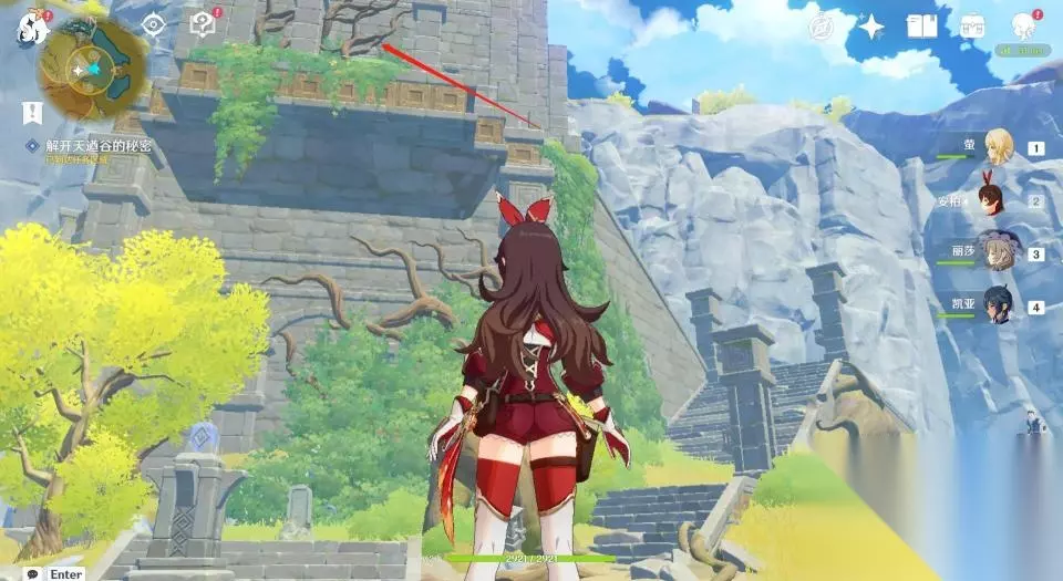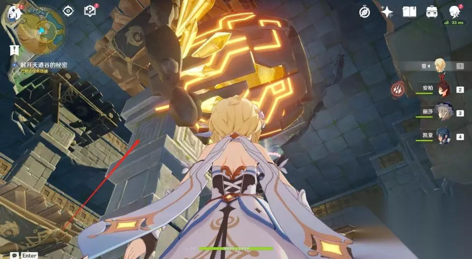32、这一座石塔只有一个挑战,开启后需要在60秒内爬到高处拿到发光体。因不是每个玩家都有温迪或者万叶,所以这里推荐玩家们掏出岩主,使用岩主就很容易爬上去了。