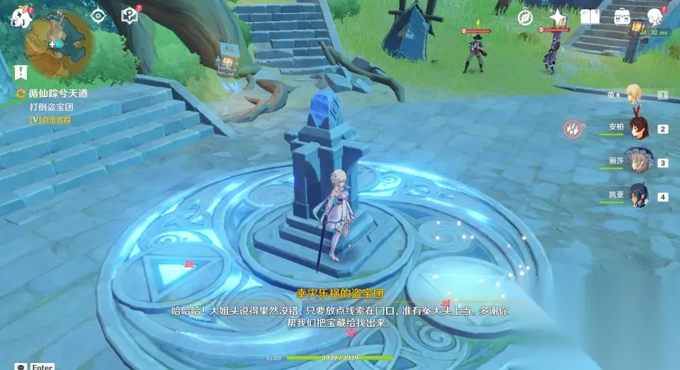 39、将第三个发光体带回石柱后会出现一群盗宝团成员,玩家需要消灭他们,这里没有时间限制要求。