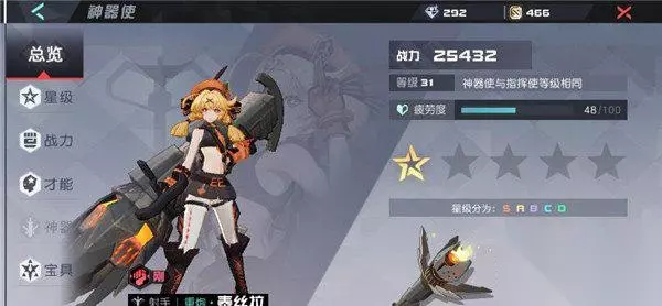 巡查: 可以触发支线任务与提升神器使好感度(与建筑同样2行动值一次)。 情报: 第六天解锁,有3个;第六天会解锁两2个,第五天会解锁3个。 第一个情报用5开启用40解决,第二个用5解锁用10解决(仅限6,5天),第三个,第五天解锁用60解决。 神器使: 有D,C,B,A,S五个等级,每个等级有五颗星,当到S级时会开放神器。 灵魂碎片: 通过抽奖 打关获得, 升星使用。 D-C用每星用5个,C-B,每星用五个,B-A每星用10个,A-S每星用20个。到S级时可以进阶神器。