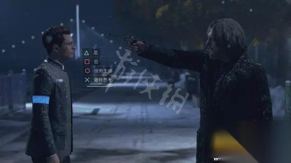 最后,汉克拿枪指着康纳问他怕死么,选择[是],会提升软体不稳定。其他几个选项则会降低软体不稳定。