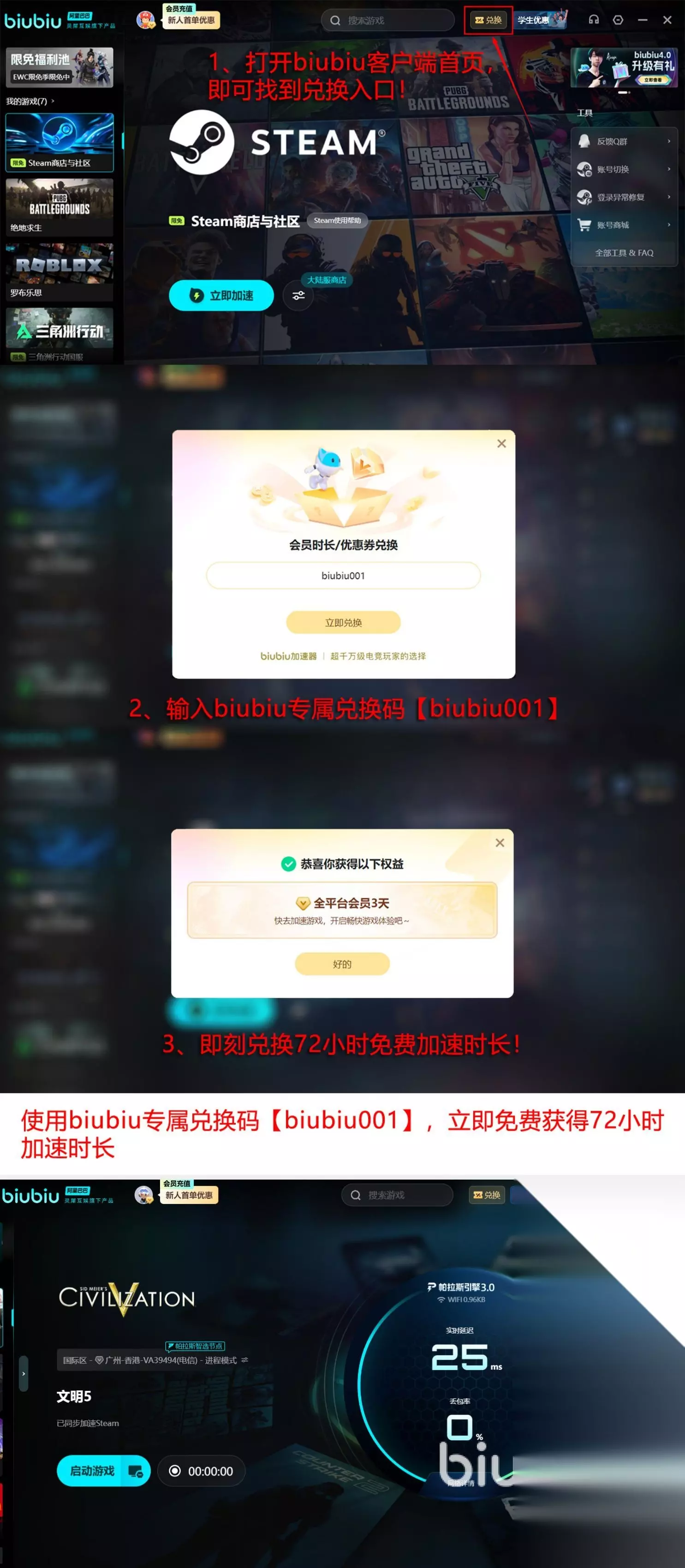 不过大家也可以完全放心,因为携带着丰厚的免费体验呈现在大家的眼前,当大家成功下载并首次注册后,即可拥有24小时的全功能以及全平台免费加速体验。还可用【biubiu001】额外获得三天的加速服务,那么总计下来就可长达96小时,可随时随地展开高性能的体验。其中还有数千款不同的游戏都支持限免活动,大家需要在规定的时间之内,畅通无忧的体验。