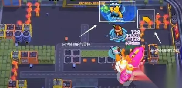 一开始阿渤和格尔要在场景最上方放置自己的妙具,位置如图所示,准备好一个"降魔大阵",只等怪兽上钩。