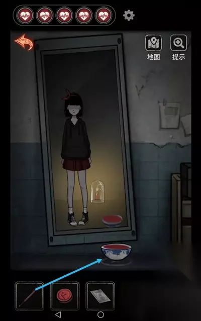 娱乐室,篮球投篮,小剑插入桌上塑料桶 墙上的画,用指甲刀划开手印(打开塑料桶前无法进行这一步)