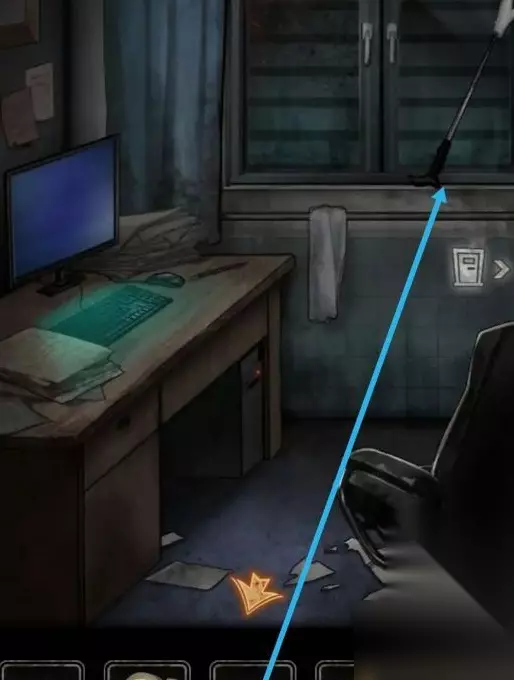 右侧拿到抹布,洗脸池里打湿抹布和海绵。 返回右侧,先用假肢,再放湿抹布,再点击组合擦窗户,得到镜像密码5823,打开电脑桌抽屉