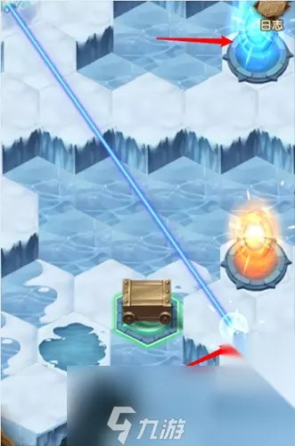 2、这时,来到前方的平台上,通过调整雪球,将蓝色光线放出,这样就可以通过后方的平台传送至最后的敌人。