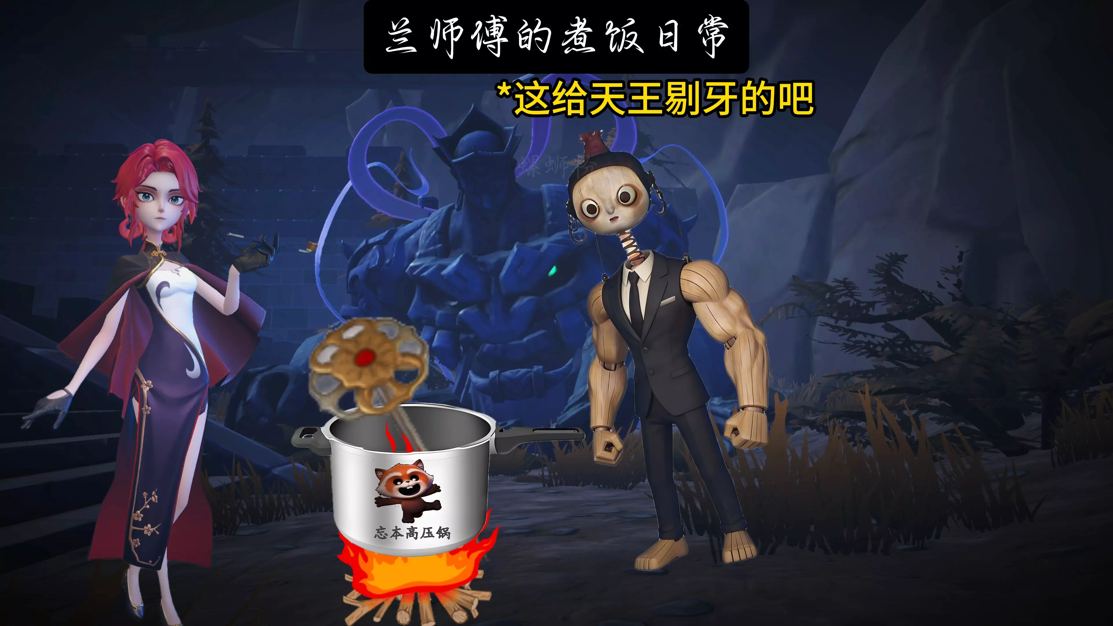这是游戏衍生的趣味内容《兰师傅的煮饭日常(二)》,展示了游戏角色兰师傅的搞怪煮饭过程,加入了光头墙的裤衩子、千年绿毛龟等奇葩食材,还有角色要求多放料给少帝吃,充满趣味脑洞。