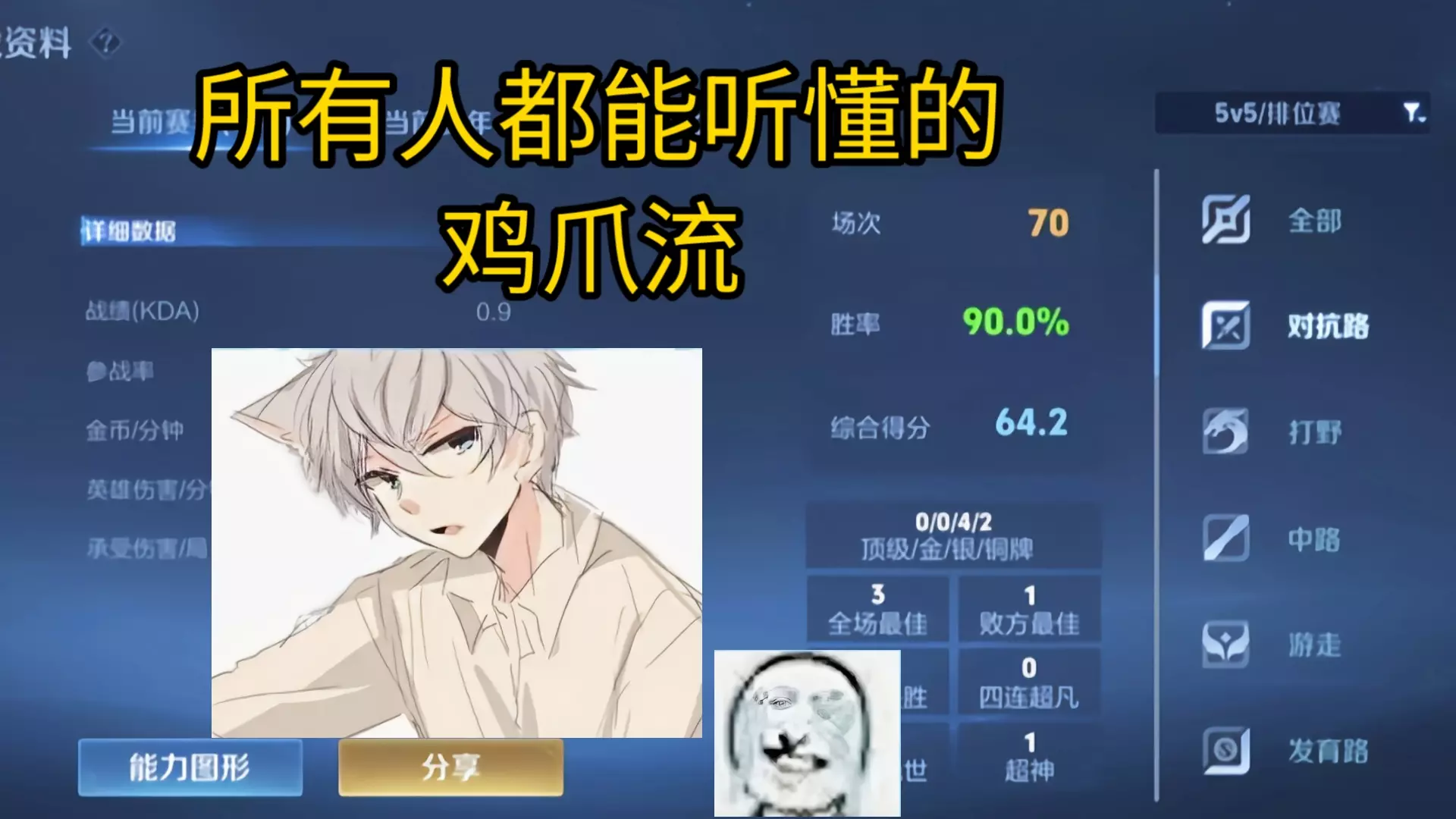 这是一期《王者荣耀》的精彩集锦,展示了拥有95%胜率的百评国一貂蝉的顶尖对局思路,对局中强调貂蝉要注重经济获取,还有卡线等实用技巧,分均经济表现十分亮眼。
