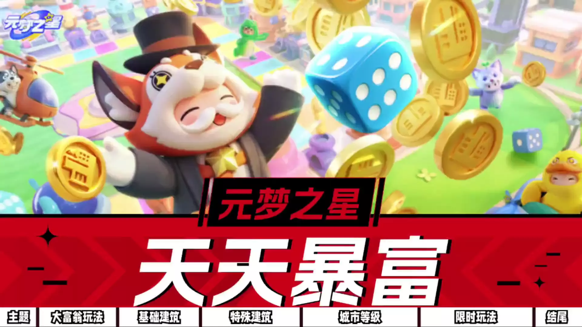 《元梦之星》新玩法“天天暴富”即将上线,玩家将在“千城之城”中以投骰子为起点,建造建筑、触发随机事件,还能和好友互动,通过完成任务等获取资源,体验成为顶级富豪的乐趣。