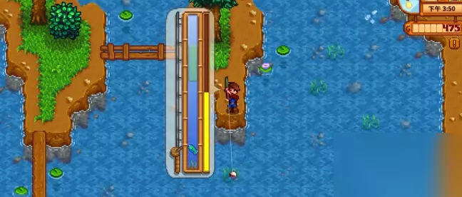 钓鱼前记得先准备好鱼竿,游戏初期你会收到威利送的竹钓竿,这是咱们的起点。站在水边面朝水面,按住鼠标左键就能甩竿,进度条越满抛得越远。听到咕噜声看到上钩提示时赶紧点击左键,这时候会进入钓鱼小游戏界面,绿色条要始终盖住游动的鱼图标才能让右侧进度条涨满。刚开始可能会觉得手忙脚乱,多练几次就能找到节奏感。