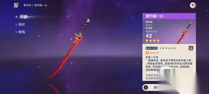 并且在旋风出现后角色自身的攻击力还会提升百分之十五,持续时间为八秒钟,每八秒能触发一次,这个效果还是相当不错的,和卢姥爷的专武效果有点类似,同时这个旋风是由实景效果的哦,他是一个类似红色枫叶一样的旋涡特效,还是比较炫酷的,基本上很少有武器在攻击时会有特效产生,更不要说是四星武器了,总结一下这个武器的强度还是很可以的,但由于主属性不是精通,所以不适合万叶,适用的角色有神里家的大小姐、牛杂师傅、绫人,笼钓瓶一心的突破材料有三个,分别是鬼面具、狼牙、浮游灵核心。这个武器有一个非常特殊的地方,就是他无法进行精炼,最高只有一阶,大家不需要辛辛苦苦用武器胚胎来制作材料了,不得不说非常的良心啊!