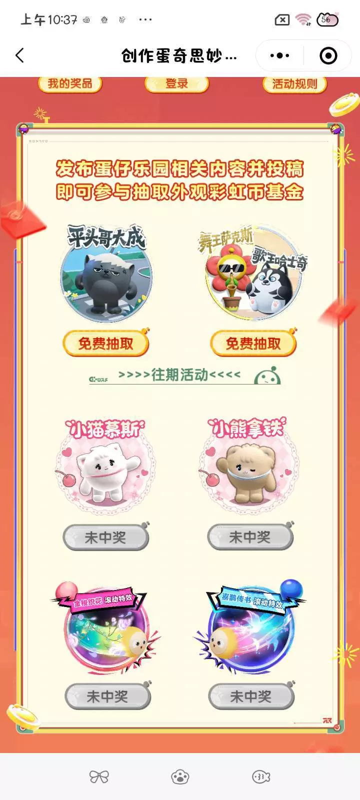 微信抽奖。100彩虹币