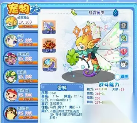 7、虹霞翼虫 本周带 8 速+扫尾,在与龙系相遇,有着很强的战斗力,叠强化快,有起舞标记时,12 速有闪避;还能踢人 or 踢自己,还可以削强,整体来说在虫系的地位很高。 8、金翼瑟卡特 第二十届天梯赛宠物,多回合技能,搭配迷宫环境,可删 pp,可波及。