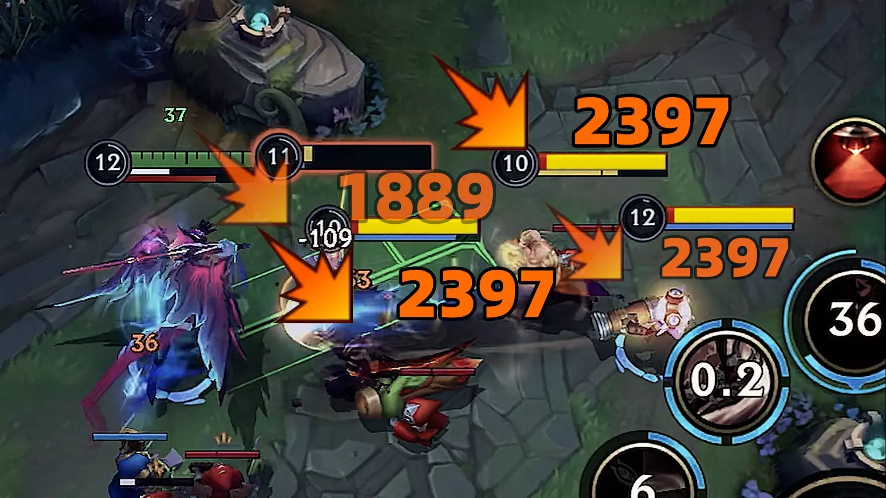 这是一期英雄联盟手游的电子竞技内容,展示了玩家使用高数值的英雄在对局中打出精彩操作,完成五连破,甚至能以一追五,呈现了版本强势英雄在对局中的压制力。