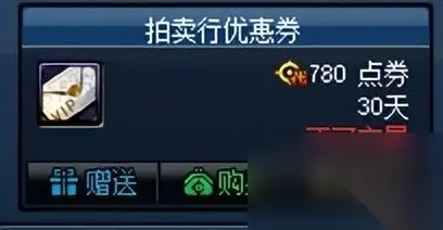 2、拍卖行优惠券 拍卖行优惠券,不仅可以将拍卖行的手续费会从5%降低到3%,而且能将金币寄售的手续费会从5%降低到1%。若勇士们近期会出售大量道具,或者出售金币,那么该优惠券则是必不可少的存在。 该道具只需要780点券(30天),剩下的代币券还可以购买其它道具。