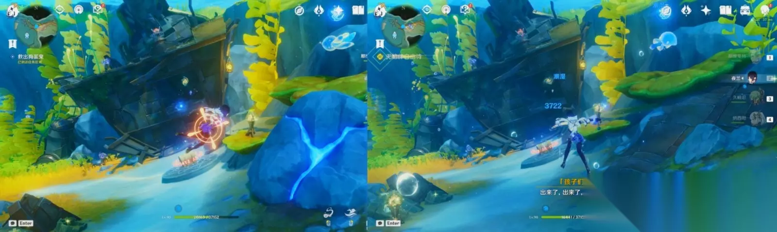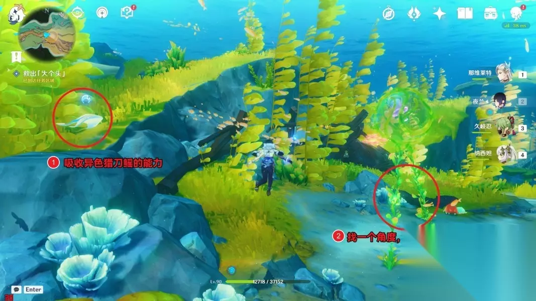 可以直接引诱舰炮射击碎石来救出捣蛋鬼。 ▌ 8 ▷ 跟随孩子们 ▌ 9 ▷ 救出「大个头」 吸收异色猎刀鳐的能力,斩断原海海草。