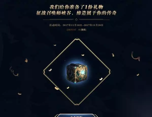 很简单,登陆账号-绑定大区-打开宝箱即可! 奖励一览 宝箱里面包含一款永久皮肤(随机)、50个圣杯印记以及符石碎片*3