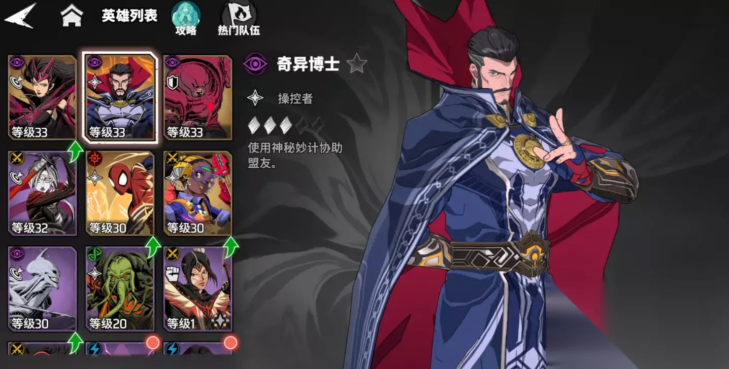 漫威秘法狂潮博士攻略就分享到这了,博士能加攻击力,带有拉条效果,并且还能回复全体队友血量减少负面效果,作为辅助而言作用非常全面,大家在获得后一定要好好培养搭配。